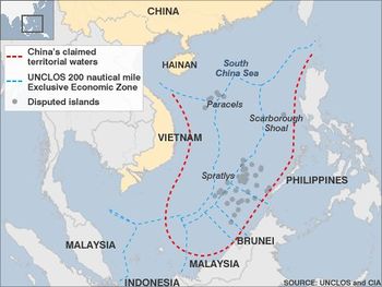 - ^ Note: There are scattered garrisons occupied by personnel of several claimant states.CIA World Factbook : Spratley Islands