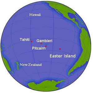 Pitcairn Island as seen from a Globe view with other Pacific Islands
