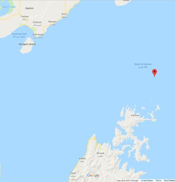 جزيرة قوين الكبرى (العلامة الحمراء) في مضيق هرمز.