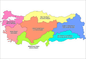 كما تنقسم هذه المناطق إلى 81 محافظة، للمزيد انظر تركيا (تقسيمات ادارية)