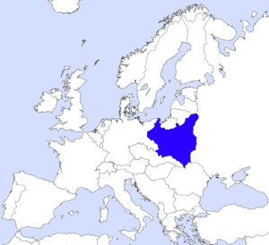 The Polish People's Republic (پولندية: Polska Rzeczpospolita Ludowa, PRL), or simply Poland (پولندية: Polska), was a country in Central Europe that existed from 1947 to 1989 as the predecessor of the modern-day Republic of Poland. With a population of approximately 37.9 million near the end of its existence, it was the second most-populous communist and Eastern Bloc country in Europe.[2] A unitary state with a Marxist–Leninist government, it was also one of the main signatories of the Warsaw Pact alliance. The largest city and official capital since 1947 was Warsaw, followed by the industrial city of Łódź and cultural city of Kraków. The country was bordered by the Baltic Sea to the north, the Soviet Union to the east, Czechoslovakia to the south, and East Germany to the west.