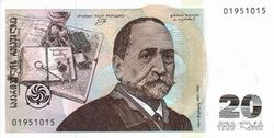 Georgian twenty lari bill portraying Ilia Chavchavadze, founder of National Bank of Georgia