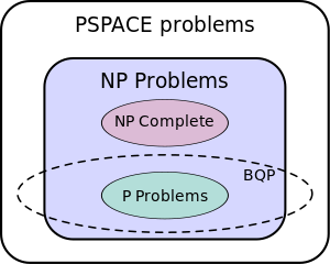 إلى جانب التوصيف واللوغاريتمات المنفصلة ، تم العثور على خوارزميات الكم التي تقدم أكثر من تسريع متعدد الحدود على خوارزمية كلاسيكية معروفة لعدة مشاكل,[8] بما في ذلك محاكاة العمليات الفيزيائية الكمومية من الكيمياء وفيزياء الحالة الصلبة ، وتقريب جونز متعدد الحدود ، وحل معادلة بيل. لم يتم العثور على دليل رياضي يوضح أنه لا يمكن اكتشاف خوارزمية كلاسيكية سريعة بنفس القدر ، على الرغم من أن هذا يعتبر غير مرجح.[9]بالنسبة لبعض المشكلات ، تقدم أجهزة الكمبيوتر الكمومية تسريع متعدد الحدود. المثال الأكثر شهرة لهذا هو "البحث في قاعدة البيانات الكمومية" ، والذي يمكن حله بواسطة خوارزمية Grover's باستخدام عدد أقل من الاستعلامات إلى قاعدة البيانات من الناحية التربيعية أقل من تلك المطلوبة بواسطة الخوارزميات الكلاسيكية. في هذه الحالة ، لا تكون الميزة مثبتة فحسب ، بل هي الأمثل أيضًا ، فقد ثبت أن خوارزمية Grover تعطي أقصى احتمال ممكن للعثور على العنصر المطلوب لأي عدد من عمليات البحث عن أوراكل. تم اكتشاف العديد من الأمثلة الأخرى على سرعات الكم التي يمكن إثباتها فيما يتعلق بمشكلات الاستعلام ، مثل العثور على تصادمات في وظائف ثنائية إلى جانب وتقييم تشعبات بوابة NAND.