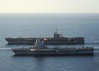 USS Enterprise (left), the first nuclear-powered aircraft carrier, and Charles de Gaulle (right), at the time the latest nuclear carrier.