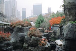 The main zoo was closed in late 1983,[89][90] though the children's zoo remained open.[91] Demolition continued through 1984, though construction on the new zoo did not begin until the following year.[48] The subsequent redesign was executed by Kevin Roche of Kevin Roche John Dinkeloo Associates. The facility's menagerie cages were replaced with three naturalistic habitats that blended with Central Park's scenery.[86][92] Four of the original buildings were preserved in the redesigned zoo, though the cramped outdoor cages were demolished. The central feature of the original zoo, the sea lion pool, was retained.[91][9]