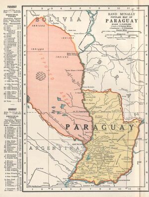 The first confrontation between the two countries dates back to 1885, when the Bolivian entrepreneur Miguel Araña Suárez founded Puerto Pacheco, a port on the Upper Paraguay River, south of Bahía Negra. He assumed that the new settlement was well inside Bolivian territory, though Bolivia had implicitly recognized Bahía Negra as Paraguayan. The Paraguayan government sent in a naval detachment aboard the gunboat Pirapó, commanded by Paraguayan War veteran Domingo Antonio Ortiz,[23] which forcibly evicted the Bolivians from the area in 1888.[24][25] Two agreements followed, in 1894 and 1907, which neither the Bolivian nor the Paraguayan Parliaments ever approved.[26] Meanwhile, in 1905 Bolivia founded two new outposts in the Chaco, Ballivián and Guachalla, this time along the Pilcomayo River. The Bolivian government ignored the halfhearted Paraguayan official protest.[25]
