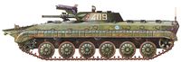 ب) مركبات قتال المشاة: لم تظهر مركبات قتال المشاة مع ظهور الدبابات، غير أن المصاعب التي صادفتها قوات المشاة المرافقة للدبابات في ميادين القتال، وخاصة في المناطق الوعرة، إضافة إلى الخسائر الكبيرة في صفوف المشاة الراجلة أوالمنقولة على عربات مدولبة تطلب وجود مركبات مزنجرة خفيفة التدريع ومجهزة ببرج دوار، ذات قدرة حركية كبيرة ومسلحة بأسلحة متوسطة ومنظومات صواريخ م/د وم/ط، وتتسع لعدد من الجنود (7-9 جنود) إضافة إلى طاقمها المؤلف من 3 أشخاص. ولمركبات قتال المشاة معظم مواصفات الدبابات الخفيفة، وهي تحمل المشاة الراكبة في جوفها، وترافقهم عند ترجلهم في أثناء القتال وتتابع حركتهم، وتدعمهم برمايات أسلحتها، وتتصدى لدبابات العدو. ويمكن استخدامها في مختلف أنواع الأعمال القتالية والإنزالات الجوية والبحرية ومع القوات الخاصة، وقد نافست أعدادها أعداد الدبابات في القوات المدرعة الحديثة اليوم .
