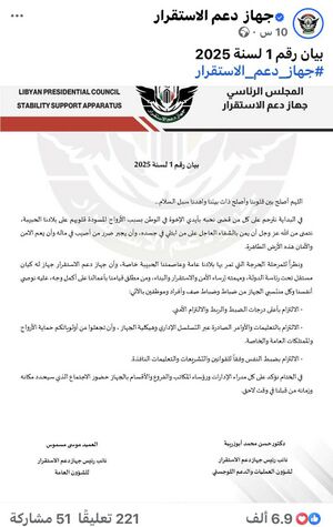 - ^ "اتفاق على تعيين «أبوزريبة» رئيساً لجهاز دعم الاستقرار". عين ليبيا. 2025-05-15. Retrieved 2025-05-15.