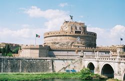 Rome was too large for the Goths to completely encircle. So they set up seven camps, overlooking the main gates and access routes to the city, in order to starve it out. Six of them were east of the river, and one on the western side, on the Campus Neronis, near the Vatican. This left the southern side of the city open.[7] The Goths then proceeded to block the aqueducts that were supplying the city with its water, necessary both for drinking and for operating the gristmills. The mills were those situated on the Janiculum, and provided most of the bread for the city. Although Belisarius was able to counter the latter problem by building floating mills on the stream of the Tiber, the hardships for the citizenry grew daily. Perceiving this discontent, Vitiges tried to achieve the surrender of the city by promising the Roman army free passage, but Belisarius refused the offer, telling his foe:[8]