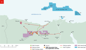 خريطة توضح مشروعات شل الاستكشافية في مصر.