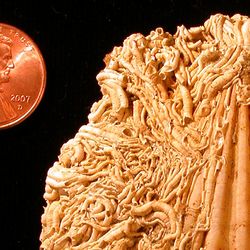 Serpulid tubes on a marine shell; Duck Harbor Beach on Cape Cod Bay, Wellfleet, Massachusetts.