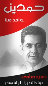 اشتهر صباحي كشخصية معارضة، يتبنى الفكر الناصري وفي عام 1996 أسس حزب الكرامة الناصري[3][4] كان صباحي مرشح مستقبل في الانتخابات الرئاسية 2012 وليس عن حزب الكرامة. كأحد الشخصيات العلمانية القليلة التي لم تربطها أي علاقات مع نظام مبارك، جذب صباحي دعم كبير من الناصريين. كان شعار حملته الانتخابية "واحد ممنا" مما يسلط الضوء على ارتباطه القوي بالطبقة العاملة ودفاعه عن التطلعات الاشتراكية. حصل صباحي أيضاً على دعم شخصيات مصرية بارزة منها الكاتب والناشط السياسي علاء الأسواني والمخرج والكاتب السينمائي خالد يوسف.[3][5]