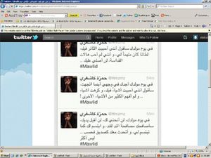 في 2012، في ذكرى المولد النبوي [1] نشر كاشغري على حسابه في تويتر تغريدة وصفها البعض بأنها سب للذات الإلهية والنبي محمد، مما أدى إطلاق مئات الآلآف من التغريدات الغاضبة والمستنكرة. [2] ويقول فيها[3] مخاطبا الرسول بطريقة غير مباشرة: