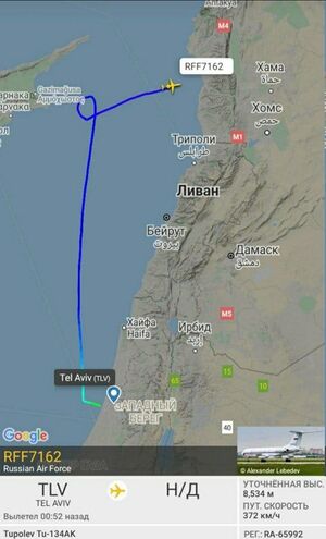ووصلت الطائرة التابعة لسلاح الجو الروسي إلى مطار قاعدة حميميم"التي يتخذ منها الروس مقراً رئيساً لقواتها في سوريا. وكانت الطائرة قد وصلت إلى إسرائيل قادمة من موسكو يوم في اليوم نفسه. وقال الصحفي الإسرائيلي في صحيفة هآرتس العبرية آڤي شارف، في تغريدة إن طائرة روسية أقلعت من تل أبيب إلى اللاذقية، مشيراً إلى أن هناك "رحلة أخرى مباشرة من تل أبيب إلى اللاذقية بعد ثلاثة أيام من اليوم".