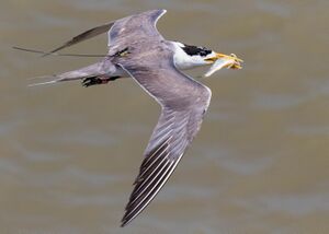 Fish are the main food of the greater crested tern, found to make up nearly 90% of all prey items with the remainder including cephalopods, crustaceans and insects.[14] Unusual vertebrate prey included agamid lizards and green turtle hatchlings.[35]