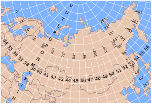 - في اليمين: مرتسم وتربيع لامبير لشمال الجزائر . نقطة الأصل : خط عرض 40 غراد شمالا خط الطول 3 غرادات شرق خط الطول العالمي 500.000 = 0 × 300.000 متر = y o متر ، لامبير.