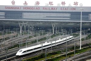 China Railways CRH380A - the line's rolling stock - test on 28 September 2010 at Shanghai Hongqiao Railway Station.