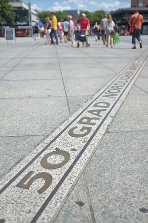 بدءاً من خط الزوال الرئيسي، في الاتجاه الشرقي، يمر خط العرض 50° شمالاً عبر: