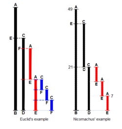 وكمثال على ذلك، لنأخذ عملية حسابية بسيطة كضرب عددين موجبين، ولنفترض أن الإمكانات المتوفرة لدينا لإجرائها لا تزيد على الورقة والقلم. إن طريقة الضرب المعتمدة غالباً، ستكون بضرب أرقام العدد الأول بكل رقم من أرقام العدد الثاني على التوالي، ابتداءً من اليمين نحو اليسار، وترتب الإجابات بعضها تحت بعض، مع إجراء انزياح بمقدار مرتبة في كل مرة، وفي نهاية عمليات الضرب، تجرى عملية جمع أخيرة، وهذه هي الخوارزمية التقليدية للضرب.
