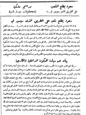 جلال الملك سعود يُبشر بالدستور رسمياً. الصفحة الأولى من أم القرى، 30 ديسمبر 1960.