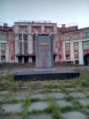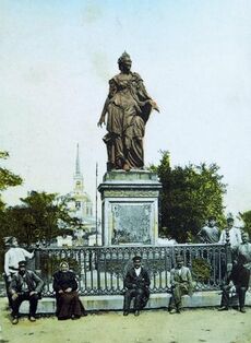 نصب يكاترينا العظيمة في إكترينوسلاڤ (1840–1920[بحاجة لمصدر]). استبدل السلطات السوڤيتية هذا النصب التذكاري الذي كان قائماً أمام معهد التعدين بنصب تذكاري للأكاديمي الروسي ميخائيل لومونوسوڤ.[19]