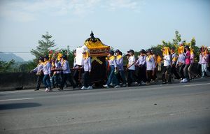 From the 3rd century on by the Northern Wei, accompanying the spread of Buddhism in China, strong influences from the Indian subcontinent penetrated the ancient Chinese indigenous religion. A cult of Ganesha (الصينية: 象頭神 Xiàngtóushén, "Elephant-Head God") is attested in the year 531.[52] Pollination from Indian religions included processions of carts with images of gods or floats borne on shoulders, with musicians and chanting.[51]