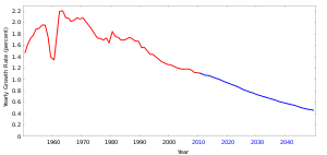 The UN projects a world population of 9.15 billion in 2050, which is a 32.69% increase from 2010 (6.89 billion).[6]