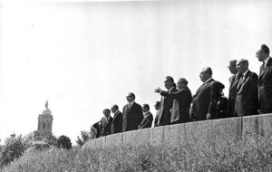 Richard Nixon had served as vice president from 1953 to 1961, and had been defeated in the 1960 presidential election by John F. Kennedy. In the years after his defeat, Nixon established himself as an important party leader who appealed to both moderates and conservatives.[6] Nixon entered the race for the 1968 Republican presidential nomination confident that, with the Democrats torn apart over the war in Vietnam, a Republican had a good chance of winning the presidency in November, although he expected the election to be as close as in 1960.[7] One year prior to the 1968 Republican National Convention the early favorite for the party's presidential nomination was Michigan governor George Romney, but Romney's campaign foundered on the issue of the Vietnam War.[8] Nixon established himself as the clear front-runner after a series of early primary victories. His chief rivals for the nomination were Governor Ronald Reagan of California, who commanded the loyalty of many conservatives, and Governor Nelson Rockefeller of New York, who had a strong following among party moderates.[9]