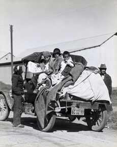 Roosevelt placed a high emphasis on agricultural issues.[33] Farmers made up thirty percent of the nation's workforce, and New Dealers hoped that an agricultural recovery would help stimulate the broader economy.[34] Leadership of the farm programs of the New Deal lay with Secretary of Agriculture Henry Wallace, a dynamic, intellectual reformer.[35][36] The persistent farm crisis of the 1920s was further exacerbated by the onset of the Great Depression, and foreclosures were common among debt-ridden farms.[37] Farmers were locked in a vicious cycle in which low prices encouraged individual farmers to engage in greater production, which in turn lowered prices by providing greater supply. The Hoover administration had created the Federal Farm Board to help address the issue of overproduction by purchasing agricultural surpluses, but it failed to stabilize prices.[38] In the 1930s, Midwestern farmers would additionally have to contend with a series of severe dust storms known as the Dust Bowl, provoking migration from the affected regions.[39]