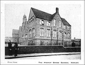 Reginald Joseph Mitchell was born on 20 May 1895 at 115 Congleton Road, Butt Lane, in Staffordshire, England.[1] He was the second eldest of five children, and the eldest of three brothers. His father Herbert Mitchell was a Yorkshireman who became headmaster of three Staffordshire schools in the Stoke-on-Trent area, before he retired from teaching. He then helped to establish a printing business, Wood, Mitchell and C. Ltd, in Hanley.[2] Herbert Mitchell's wife Eliza Jane Brain was the daughter of a cooper. When Reginald was a child, the family lived in Normacot, now a suburb of Stoke-on-Trent.[3]