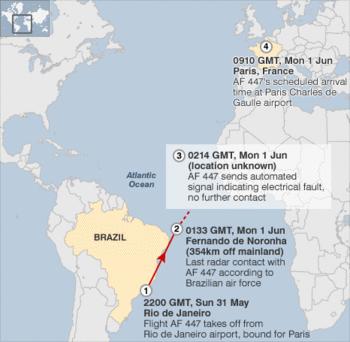 - ^ "Air France jet with 215 people on board 'drops off radar'". The Times. 2009-06-01. Retrieved 2009-06-01.