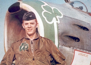 Schweickart standing in front of his North American F-86 Sabre in 1963