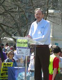 رمزي كلارك إنگليزية: William Ramsey Clark، عضو الحزب الديمقراطي، وزير العدل الأمريكي الأسبق (في عهد حكومة ليندون جونسون) ونشط سياسي وحقوقي. رشح لنيل جائزة غاندي للسلام. A progressive, New Frontier liberal,[2] he occupied senior positions in the United States Department of Justice under Presidents John F. Kennedy and Lyndon B. Johnson, serving as United States Attorney General from 1967 to 1969; previously, he was Deputy Attorney General from 1965 to 1967 and Assistant Attorney General from 1961 to 1965.