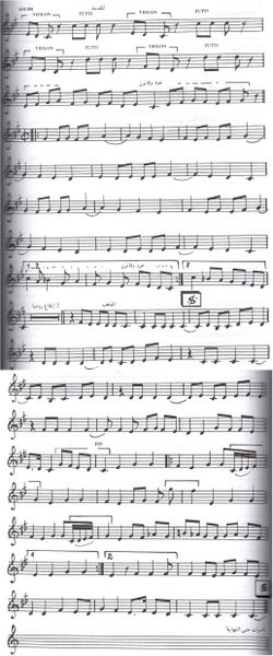 النوتة الموسيقية لأغنية ريحة البلاد، من كتاب الأغاني الخالدة لمحمد بوذينة.