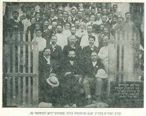 In August 1903, the First Eretz Yisraeli Congress was assembled by Menachem Ussishkin in Zichron Ya'akov. Complementing the World Zionist Congress, it was originally intended as an annual gathering of the leaders of the Yishuv; but it didn't get traction, so the First Congress was also the last one. The effort to coordinate the development of the Yishuv did however bear fruit in establishing the trade union of teachers, which joined Histadrut in 1950 and stays active to this day.