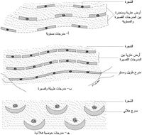 أ ـ مدرجات عريضة التدريج banquettes: تُنشأ في الأراضي التي تقل درجة انحدارها عن 40% ويكون انحدار مجراها نحو 0.5% إلى الداخل. تُحرث تربتها حراثة عميقة لزيادة نفوذ المياه وتنمية النباتات. تُزرع أشجار الفاكهة على الجانب الخارجي والمحاصيل الحقلية على الجانب الداخلي.