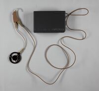 ALDs come in many forms, such as neckloops [ك],[24] pens,[25] and specialist battery pack covers.[26] Modern ALDs are usually able to receive sound from any Bluetooth device, including phones and computers, before transmitting it wirelessly to the audio processor. Most cochlear implants are also compatible with older ALD technology, such as a telecoil.[27]