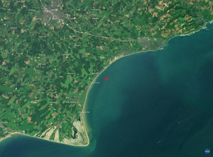 | موقع مركز الزلزال | 51°06′N 1°10′E / 51.10°N 1.17°E |