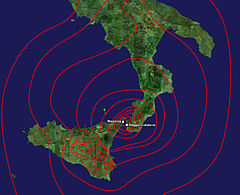 | موقع مركز الزلزال | 38°09′00″N 15°40′59″E / 38.15°N 15.683°E |