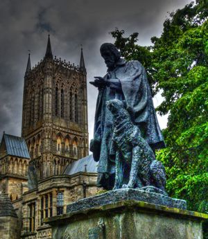 التمثال التذكاري لتنيسون بجوار كاتدرائية لنكون