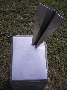 A sculpture erected in 1994 on the site of the 1993 crash on Långholmen Island, Stockholm