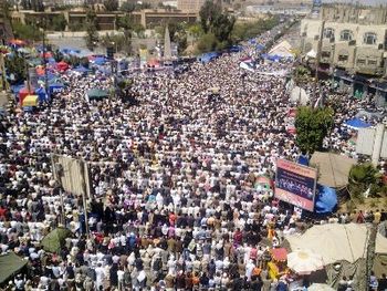 - ^ اليمن: الالاف يعتصمون بساحة التغيير بصنعاء للمطالبة باسقاط النظام ..بي بي سي العربية, 27/2/2011 م
