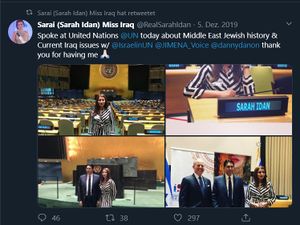 في شهر كانون الاول 2019 القت كلمة في مبنى الامم المتحدة عن الشرق الاوسط والتاريخ اليهودي بالاضافة الى الشأن العراقي.