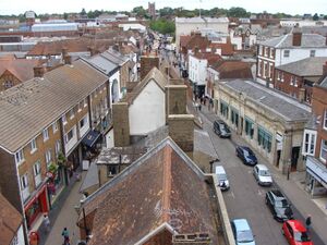 A street market on Wednesdays and Saturdays, founded by Abbot Ulsinus, still flourishes.[14] In 1553, Henry's son Edward VI sold the right to hold the market to a group of local merchants and landowners via letters patent which also incorporated St Albans as a borough.[18] The old market hall, which dated from around 1596, was replaced by the Corn Exchange in 1857.[19]