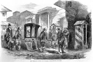 Canning's term in Constantinople lasted from 1842 to 1852. When Canning's old ally Stanley, now Earl of Derby, formed a government in 1852, Canning hoped to receive the foreign office, or at least the Paris embassy. Instead, he was raised to the peerage as Viscount Stratford de Redcliffe, in the County of Somerset.[8] He returned home in 1852, but when Aberdeen's coalition government was formed, Stratford de Redcliffe was returned to Constantinople.