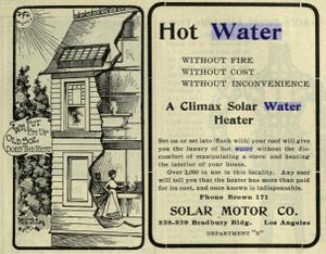 هناك سجلات لجوامع الطاقة الشمسية في الولايات المتحدة يعود تاريخها إلى ما قبل عام 1900، تضم خزان باللون الأسود مركب على السقف. عام 1896 في كيمب كلارينس بالولايات المتحدة، كانت محاطة خزان من صندوق خشبي، وبالتالي خلق أول "سخان للمياه" كما هي معروفة اليوم. على الرغم من استخدام الواح جوامع سطحية لتسخين المياه بالطاقة الشمسية في ولاية فلوريدا وكاليفورنيا الجنوبية في 1920. كان هناك موجة من الاهتمام في التسخين الشمسي في أمريكا الشمالية بعد عام 1960، ولكن خصوصا بعد أزمة النفط عام 1973.