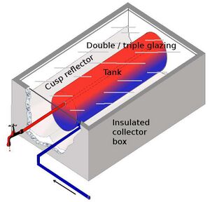 ICS أو دفعة الجوامع يقلل من فقدان الحرارة عن طريق وضع خزان المياه في علبة معزولة حراريا. ويتحقق ذلك من خلال تغليف خزان المياه في صندوق ووجود فتحة زجاجية اعلى الصندوق يسمح لحرارة الشمس للوصول إلى خزان المياه. والجدران الاربعة الاخرى من الصندوق معزولة وذلك للحد من الحمل الحراري والإشعاع الحراري من البيئة.بالاضافة إلى ذلك يمكن ان يكون للجدران الاربعة للصندوق طبقة داخلية عاكسة، حتى تعكس الحرارة المفقودة من الخلف الخزان إلى الخزان.. في طريقة بسيطة يمكن للمرء أن ينظر في سخان المياه بالطاقة الشمسية ICS بمثابة خزان المياه المغلق من نوع "فرن" إذ يحتفظ بالحرارة القادمة من الشمس، فضلا عن حرارة المياه في الخزان. باستخدام صندوق لا يلغي فقدان الحرارة من الخزان للبيئة، لكنه يقلل إلى حد كبير من هذه الخسارة.