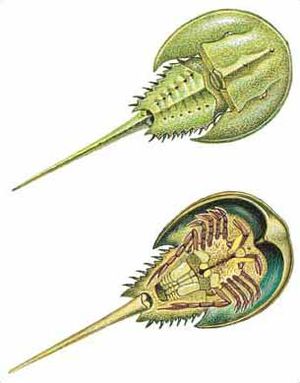سرطان الحدوة Limulidae حيوان بحري كبير له صدفة تشبه في الشكل حافر حصان. يُسمَّى سرطان الحدوة في بعض الأحيان ملك السرطانات، ومع ذلك لا توجد صلة بينه وبين السرطان الحقيقي المهم تجاريًا والمسمى ملك السرطانات الأحمر. وسرطان الحدوة العضو الوحيد ضمن مجموعة كبيرة من الحيوانات ظهرت على الأرض قبل ملايين السنين، ولم ينقرض. أما المجموعتان الوحيدتان من الحيوانات غير المنقرضة الأكثر قرابة لسرطان الحدوة فهما العقارب والعناكب.