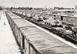 As Allied forces concentrated on defending Egypt and the Suez Canal from Italian and German attack the first shipments of 2-8-0s were delivered to Egypt,[41] but in March 1942 both types started to arrive in Palestine and by June 1942 24 ROD locomotives were working on PR and the Haifa – Beirut – Tripoli (HBT) line.[42] In 1944-45 the ROD locomotives were transferred out of Palestine and replaced by LMS locomotives[42] that had been in service on the Trans-Iranian Railway.[43] Other LMS locomotives were overhauled in Palestine in 1944 before being deployed either elsewhere in the Middle East or to the part of Italy now under Allied control.[44]