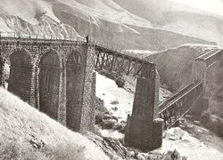 Security measures failed to stop attacks on the railway. One attack damaged a Sentinel railcar.[51] In October 1937 a more serious attack damaged a passenger train and prompted a further decline in passenger numbers.[51] In 1938 sabotage derailed 44 trains, damaged 33 rail-mounted armoured cars, destroyed 27 stations and other buildings, damaged 21 bridges and culverts and destroyed telephone and signalling equipment and water supplies.[51] A member of the Survey of Palestine recalled that "nearly all the stations on the railway had been burnt".[52] For more than one period night running became so dangerous that it was suspended.[53] In September 1938 first the Jerusalem line and then El Kantara line were closed by extensive sabotage.[53] After the latter was reopened in October, Haifa – El Kantara trains were run only three days per week compared with the previous daily service.[54] The worst year was 1938, in which 13 railway workers were killed and 123 injured.[54]